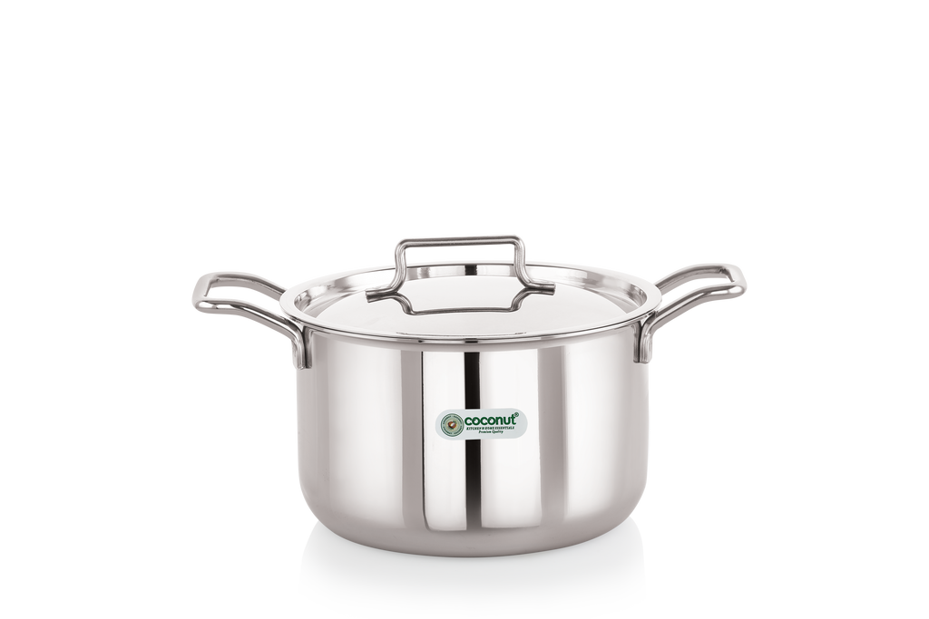 Coconut has introduced 18G Stockpot. Stockpot is crafted with Rust Free Stainless Steel. This Stockpot has adds Style to your Kitchen to look more beautiful and well decorated. This Stockpot with Lid can be used both on gas stoves as well as induction cooktop. This Stockpot is multipurpose. One can cook Vegetable. Rust Free, Premium Quality Stainless steel of heavy gauge. This Stockpot is strong, durable and convenient to clean and wash. Sure, to serve you well for a long time, this item is an ideal pick against your valuable currency. This Coconut stainless steel Stockpot is Multipurpose as one can cook daal, paneer, Vegetable etc. One will love to cook and serve in this. Coconut is a top brand in Home and Kitchen essentials. Coconut stainless Steel Neutron Stockpot wide size.
