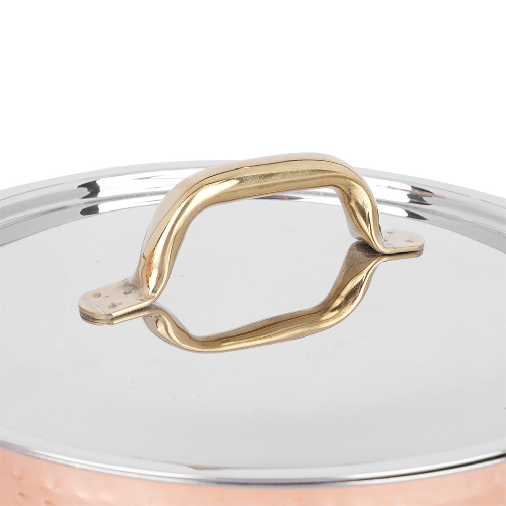 Stunning Hammered Design: The cookware is adorned with a beautiful hammered texture that exudes elegance and sophistication. This classic design pays homage to traditional craftsmanship, making each piece a statement piece in your kitchen. The hammered finish also adds a unique touch that stands out in any kitchen setting.