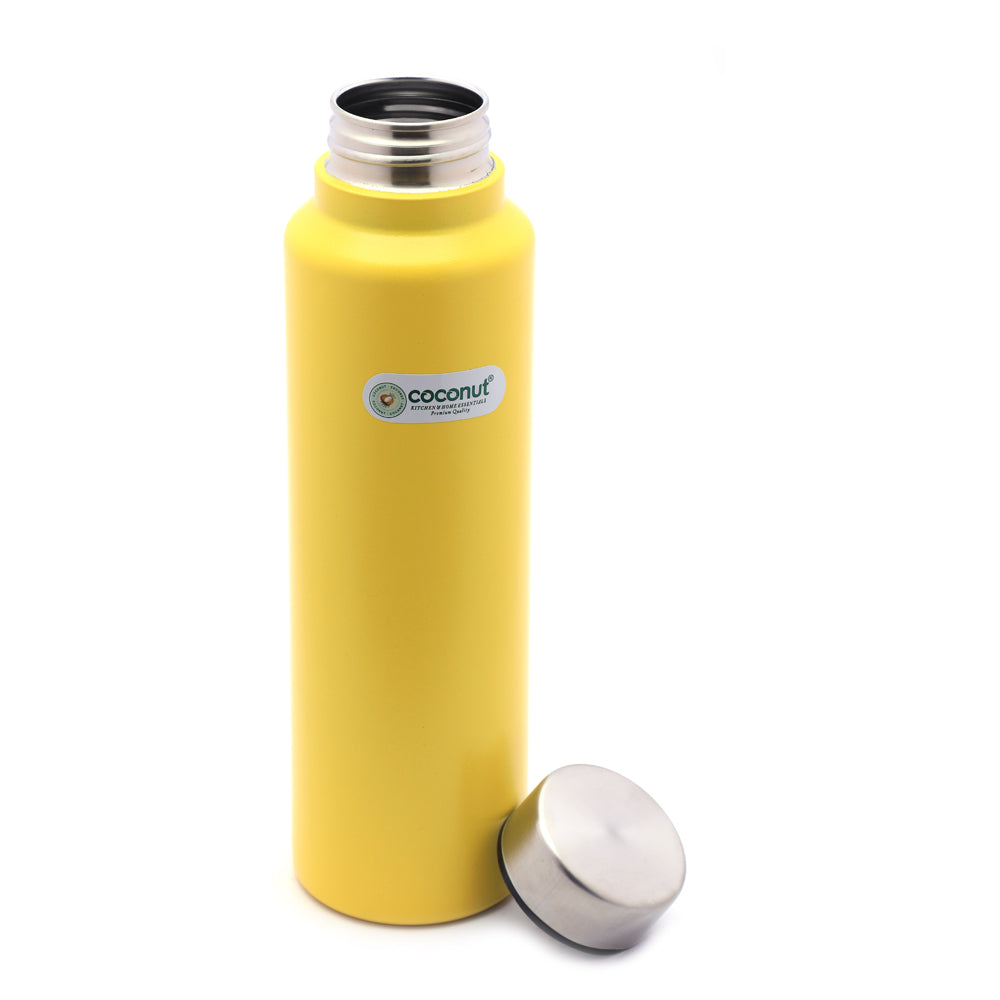 Coconut Splash Stainless Steel With Red Colour Coating Water Bottle - 1 Unit - 1000ML - Dimension - Length - 7cm, Width - 7cm, Height - 25cm. Weight - 190gm.