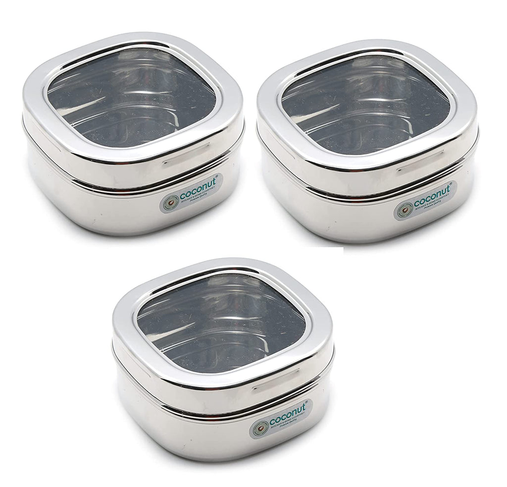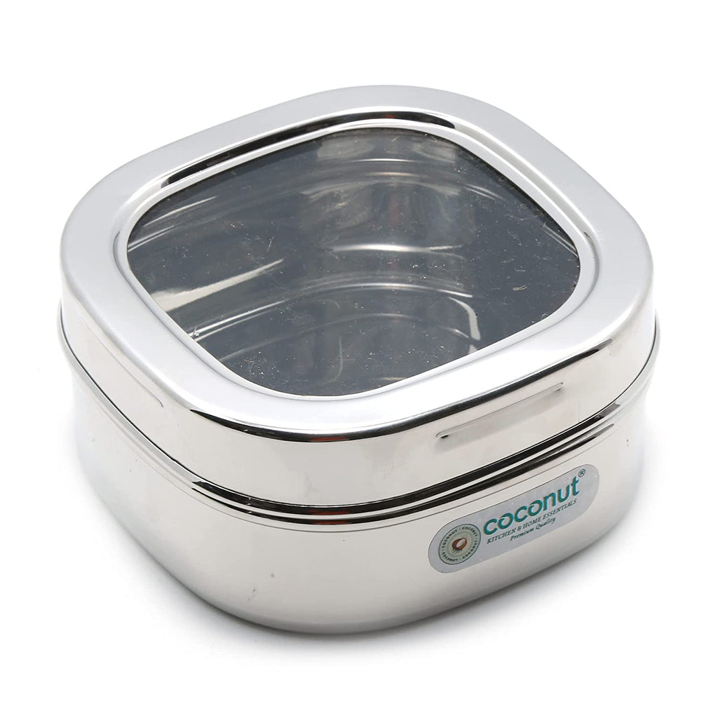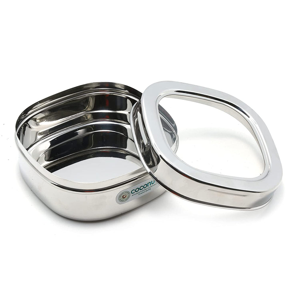 Why Stainless Steel Dabba: Coconut Stainless Steel is non-reactive, ensuring that no chemicals reach in to the Food. Food Grade, BPA Free