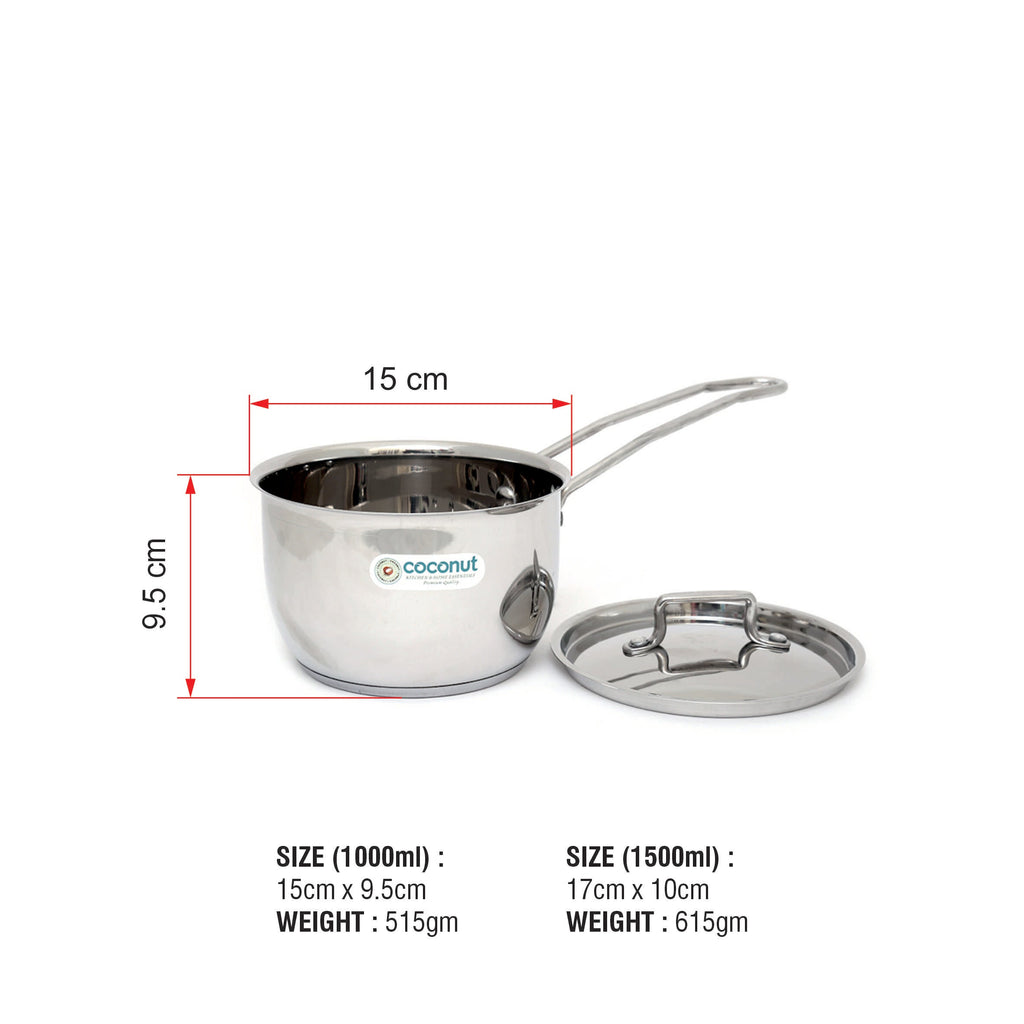 Coconut Stainless Steel Capsulated Saucepan with Lid - 1 Unit - Triply Layer Sandwich Bottom - Gas and Induction