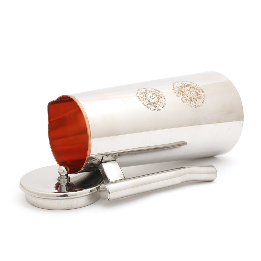 Medicinal property of Copper Jug : Copper improves brain and heart health and also has an antibacterial effect. Filling water in copper cups / vessels for over 48 hours can also kill harmful bacteria in the water. “Copper helps improve digestion and prevents constipation and acidity
