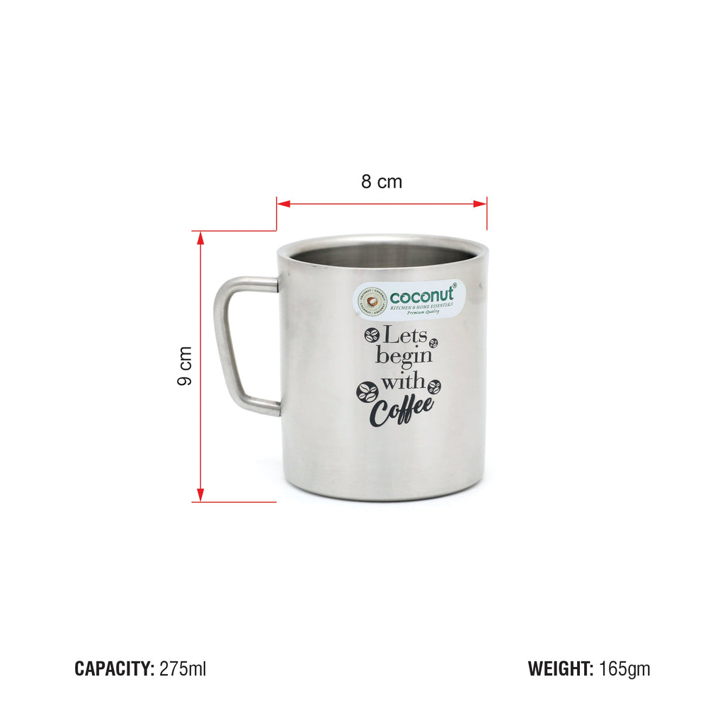 Coconut Stainless Steel Double Walled Mug For Tea / Coffee / Milk - Capacity 275ml, 1 Unit, Model-Josh Matt