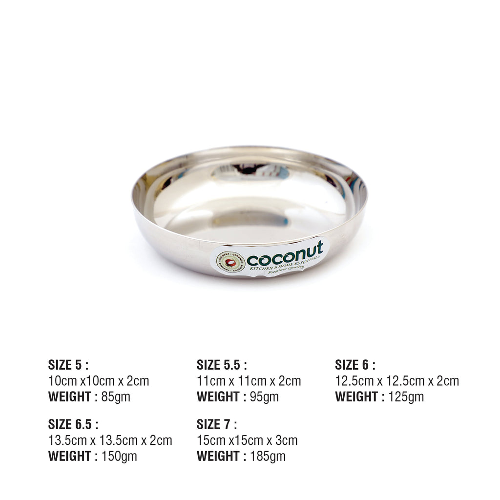Size 5 - Length - 10cm, Width - 10cm, Height - 2cm, Weight - 85gm each plate