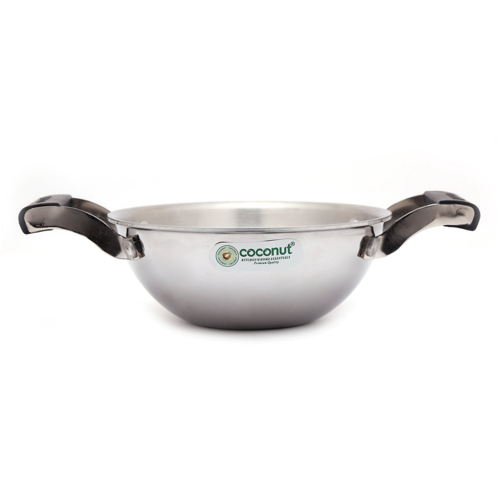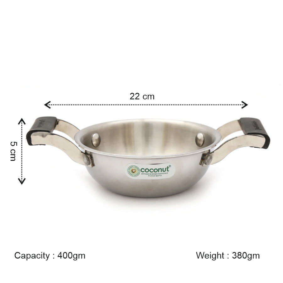 Coconut Stainless Steel Nano Kadai with Handle | Mini Multipurpose Tadka Pan | Heavy Gauge Mirror Finish | Rust Proof | Food Grade | Easy to Clean | For Tadka, Melting Butter, Heating Small Portions.