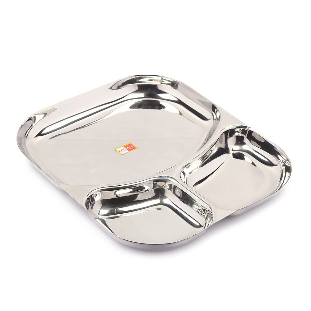 3-in-1 Partition Design: Separate compartments for main course, sides, chutney or pav bhaji accompaniments; perfect for hygienic and organized serving.